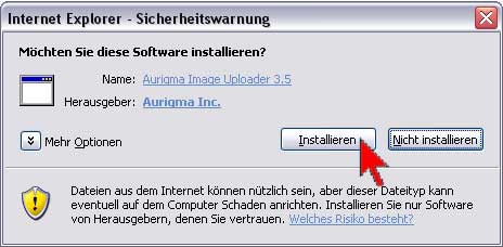 Um den ActiveX-Upload nutzen zu können, benötigen Sie