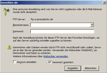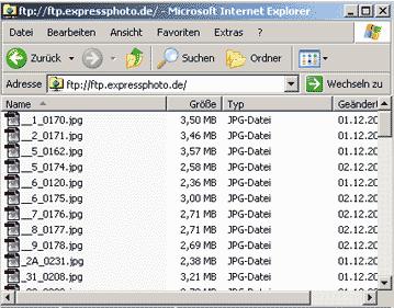 Nach erfolgreicher Anmeldung sehen Sie das FTP Verzeichnis Ihres "Bilderpool".