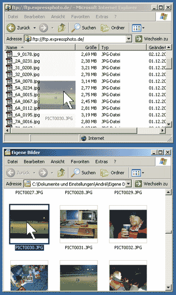 Wenn Sie weitere Bilder Hochladen möchten, öffnen Sie bitte Ihr Bilderverzeichnis und ziehen alle gewünschten Dateien einfach mit der Maus in das FTP-Fenster.